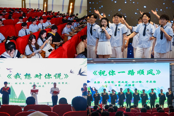 主题活动共分为理想信念教育、榜样引领教育、爱校荣校教育三个篇章。毕业生代表走上舞台分享自己的成长故事,张佳琛同学分享征兵入伍的经历,回顾军旅生活的难忘瞬间;曹星标同学分享支教保研的历程,讲述自己响应祖国号召、为教育事业贡献青春力量;孙睿同学分享升学至清华大学的备考过程,感恩学校老师们的支持与关怀;周逸捷同学分享推免至浙江大学攻读博士学位的学习心得,鼓舞同学们着眼当下,去体验、感受、珍惜青春时光;耿若怀同学代表学院全体毕业生表达了对学校、学院、家人、同学的感谢与祝愿,并带领全体毕业生宣誓。