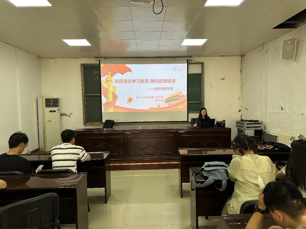 为使学生党员不断增强纪律意识、提高党性修养,用党规党纪校正思想和行动,砥砺本色、固培正气,以严明的纪律推动全面从严治党向纵深发展,不断提升党的创造力凝聚力战斗力。6月24日晚,机械学院硕士生2023级第二党支部于学院四楼报告厅开展《加强党纪学习教育,强化纪律建设》专题党课,此次党课由支部书记李华冰同志主讲,二支部全体同志参加。