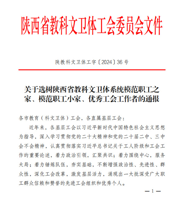 近日,根据《关于选树陕西省教科文卫体系统模范职工之家、模范职工小家、优秀工会工作者的通报》(陕教科文卫体工字〔2024〕36 号)文件,色情漫画分工会荣获陕西省教科文卫体系统“模范职工小家”荣誉称号。