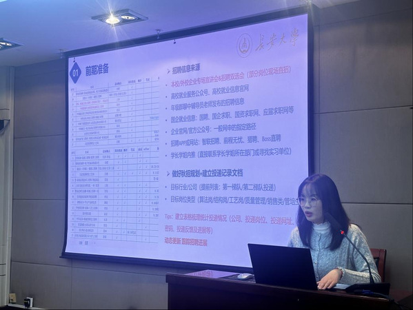 接着,杨嘉龙给大家分享了自身在求职过程中的一些心得,他强调了关注秋招时间节点的重要性,特别是“金九银十”这一求职高峰期,许多企业会集中发布岗位并进行校园招聘。他建议同学们要充分利用这一时间段,积极投递简历,参加各类招聘活动。同时,他还提醒同学们在求职过程中要学会取舍,明白“鱼与熊掌不可兼得”的道理,明确自己的职业规划和目标,结合个人兴趣、专业背景和市场需求,做出最适合自己的选择。