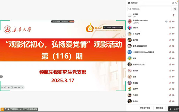 为扎实开展深入贯彻中央八项规定精神学习教育,深入领会全国两会精神,强化青年党员党性修养与使命担当,色情漫画-免费色情漫画app 领航先锋研究生党支部开展第116-118期“观影忆初心 弘扬爱党情”观影活动,引导党员筑牢信仰之基、践行报国之志,在学思践悟中展现新时代机械学子的责任担当。
