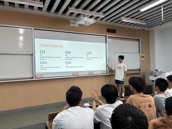 2024250005班团支书卢仲骞详细讲解中国式现代化的内涵与意义,团员们结合自身专业,积极探讨在多个领域的担当方向。团支部提出的四维行动纲领,为团员们提供了清晰的行动指南,团员们据此拟定个人计划。活动在庄重的誓言中落下帷幕,团员们纷纷表示,要用青春力量为中国式现代化建设添砖加瓦。