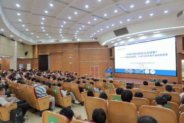 讲座现场,张老师通过案例分析、情景模拟等形式,引导学生思考“努力的意义是否因AI而消解”“如何平衡工具理性与人文关怀”等议题。互动环节中,学生围绕“AI伦理”“人机协作中的自我定位”等问题踊跃提问,现场气氛热烈。