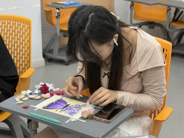 活动伊始,王俊杰老师详细讲解创作技法,从刮画时叠加蜡笔色彩刮出独特纹理,到运用解构重组、完整保留、形态再造等方法处理自然素材,再到利用麻绳与树枝制作浮雕效果,为同学们的创作指明方向。彩虹心理协会贴心准备的白色卡纸、蜡笔套装,以及校园内采集的缤纷花草,成为同学们抒发内心世界的绝佳媒介。
