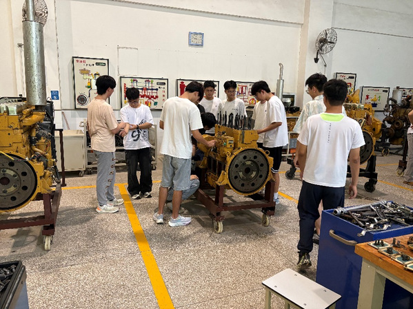 活动过程中,指导老师带领学生们学习了车间的安全管理规章制度,明确了实验室安全防护事项,培养学生在实习实践过程中的安全生产意识;指导学生进行工程车辆发动机与底盘构造的结构拆装和工作原理的学习,熟练掌握专业技能知识,锻炼学生们分工合作、相互配合的劳动精神。最后由指导老师带领学生们进行车间卫生清扫,锻炼学生的劳动热情,培养学生尊重劳动的美好品德。