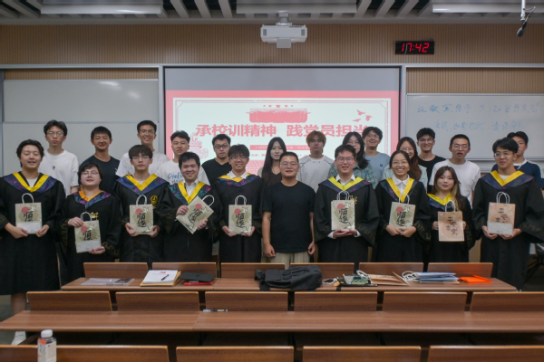 6月20日,色情漫画 本科生第一党支部于WX2103教室开展毕业生党员教育活动。支部书记吴德林以“承校训精神,践党员担当”为题,为毕业生党员上离校前的“最后一课”,对毕业生党员提出殷切期望。他强调,党员们要在“弘毅”精神的指引下,坚守初心,将个人理想融入国家发展;要秉持“明德”理念,在未来工作生活中修身立德,弘扬正气;要践行“笃学”品格,保持终身学习,追求专业卓越;要发扬“创新”精神,在行业领域大胆突破,开拓进取。最后,由吴德林向毕业生党员赠送毕业纪念品。