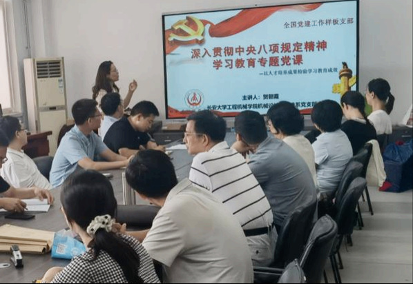 为推进深入贯彻中央八项规定精神学习教育走深走实,强化党员纪律意识和使命担当,2025年7月9日,副院长贺朝霞为机械设计与制造系党支部全体党员讲授深入贯彻中央八项规定精神学习教育专题党课。活动由支部书记刘清涛主持。
