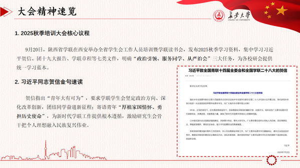 为深入贯彻落实陕西省学联2025年秋季学期培训工作要求,进一步提升研究生会成员的政治素养、服务能力和业务水平,色情漫画 研究生会于9月25日组织全体成员开展专题学习会议,会议聚焦“政治引领、服务同学、从严治会”三大核心任务,系统传达并部署落实培训精神。本次主题学习活动由研究生会执行主席张珍蕊主持,研究生会全体成员参加。
